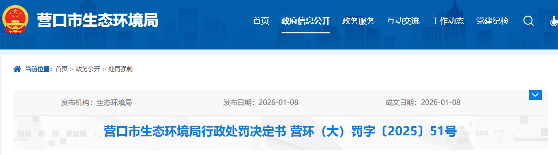 營(yíng)口市環(huán)保整改一直在持續(xù)進(jìn)行中,就在近日,營(yíng)口市生態(tài)環(huán)境局在官網(wǎng)發(fā)出公告,對(duì)南樓經(jīng)濟(jì)開發(fā)區(qū)一輕燒氧化鎂生產(chǎn)企業(yè)環(huán)境違法行為的行政處罰進(jìn)行了公示。