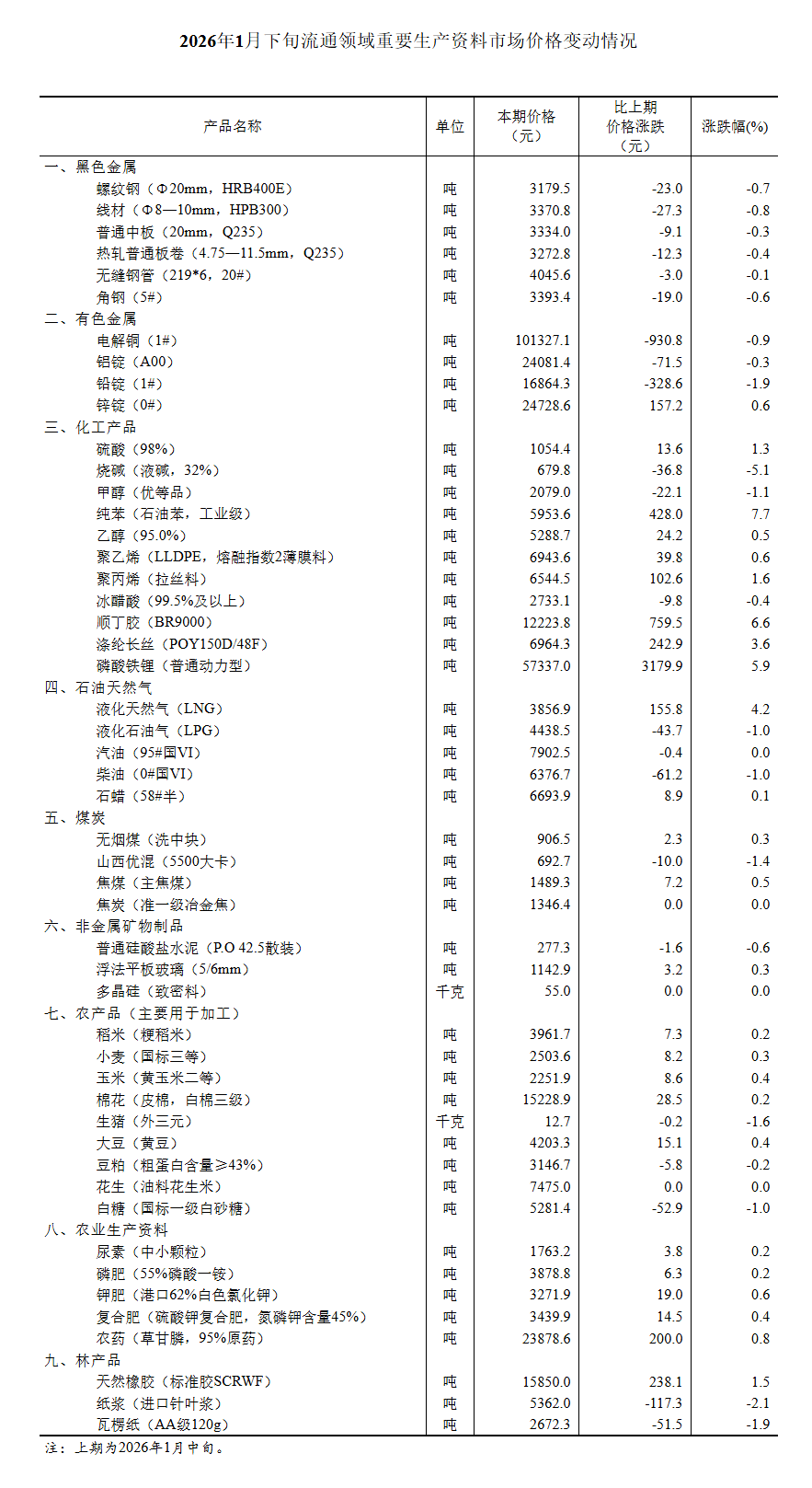1月下旬鋼鐵煤炭等流通領(lǐng)域重要生產(chǎn)資料市場(chǎng)價(jià)格變動(dòng)情況