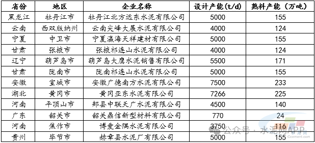 表:2026年計劃新投熟料生產(chǎn)線信息