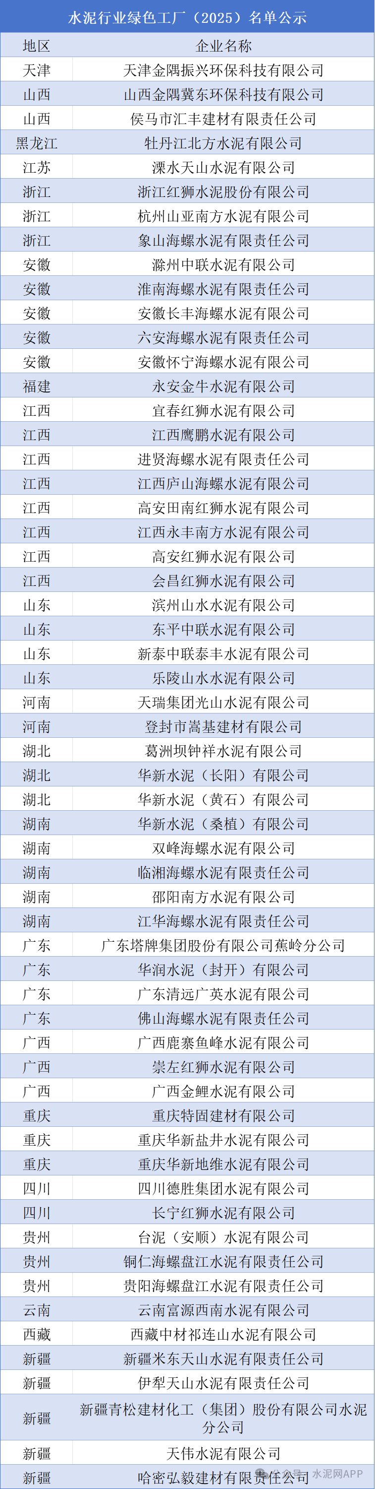 按照《綠色工廠梯度培育及管理暫行辦法》《工業(yè)和信息化部辦公廳關(guān)于開展2025年度綠色工廠推薦工作的通知》有關(guān)要求,經(jīng)省級工業(yè)和信息化主管部門推薦及專家審核,現(xiàn)將2025年度新培育綠色工廠、綠色工業(yè)園區(qū)以及動態(tài)管理調(diào)整的工廠、園區(qū)予以公示。其中水泥行業(yè)共58家企業(yè)入選,具體如下: