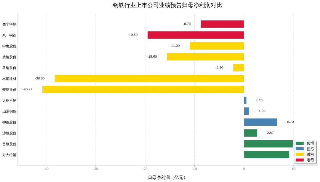 圖4 上市鋼企業(yè)績預(yù)告歸母凈利潤對比