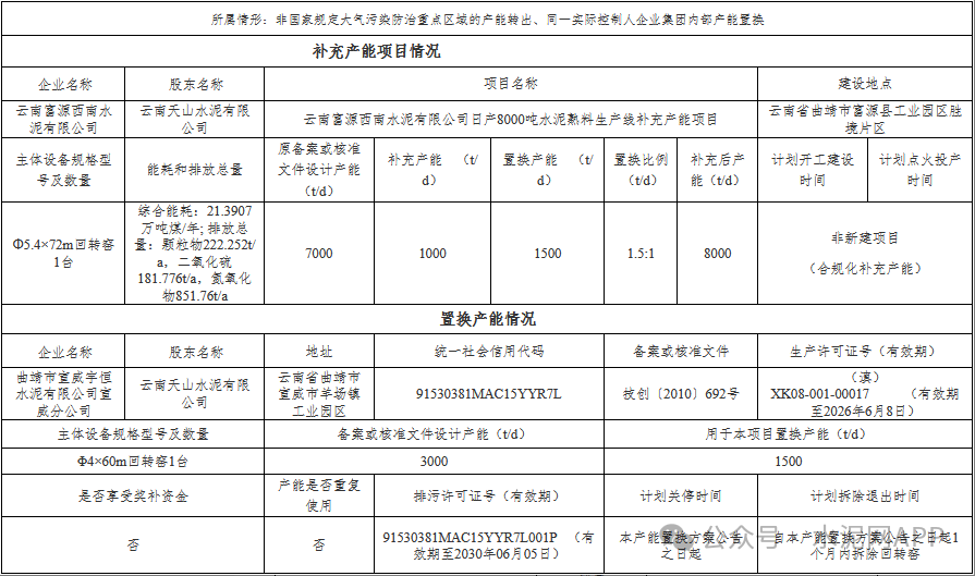3月4日,云南省工信廳發(fā)布兩則水泥生產(chǎn)線產(chǎn)能置換方案公示。曲靖市宣威宇恒水泥有限公司宣威分公司退出一條3000t/d熟料生產(chǎn)線,其中1500t/d產(chǎn)能用于補充云南富源西南水泥有限公司一條7000t/d熟料線,補齊后產(chǎn)能8000t/d,置換比例1.5:1;另外1500t/d產(chǎn)能用于補充麗江古城西南水泥有限公司一條5000t/d熟料線,補齊后產(chǎn)能6000t/d,置換比例1.5:1。