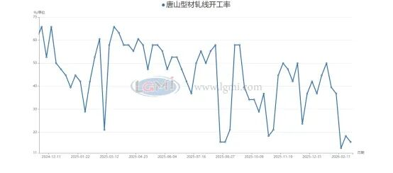 唐山調(diào)坯型鋼廠(chǎng)方面2026年2月開(kāi)工率約為18%,遠(yuǎn)低于2025年同期的40%左右,同比降幅超過(guò)20個(gè)百分點(diǎn)。這主要是由于調(diào)坯廠(chǎng)對(duì)原料成本更為敏感,在坯料價(jià)格高企的背景下,利潤(rùn)空間被大幅壓縮,導(dǎo)致企業(yè)主動(dòng)減產(chǎn)。環(huán)比方面2月開(kāi)工率較1月的13%有所回升,環(huán)比提升約5個(gè)百分點(diǎn)。但整體仍處于歷史低位,復(fù)產(chǎn)節(jié)奏明顯慢于長(zhǎng)流程鋼廠(chǎng)。唐山調(diào)坯廠(chǎng)開(kāi)工率的低迷,反映出區(qū)域內(nèi)型鋼供應(yīng)端收縮的格局仍將持續(xù)。