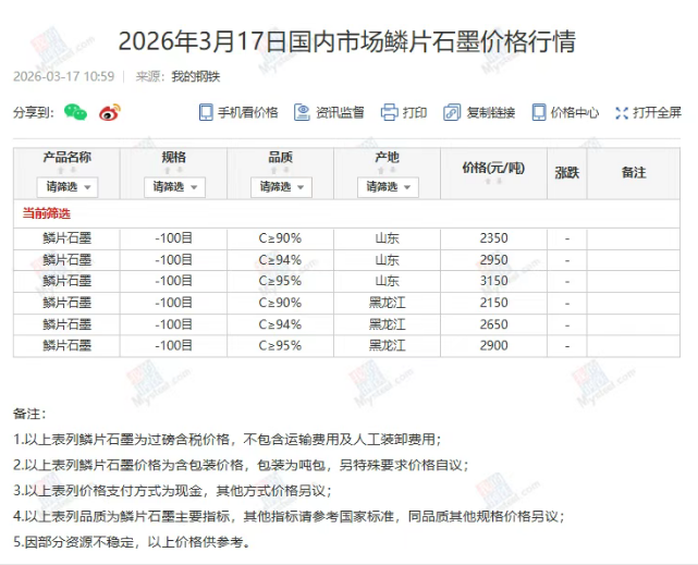 國(guó)內(nèi)市場(chǎng)鱗片石墨價(jià)格行情