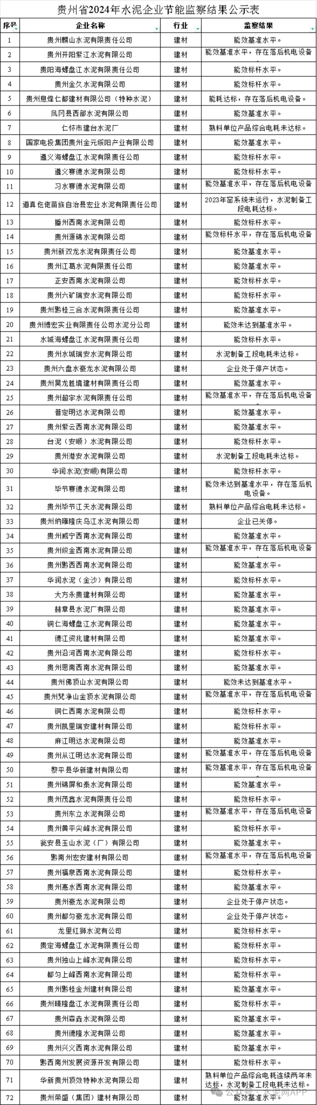 8月5日,貴州省工信廳發(fā)布“關(guān)于貴州省2024年水泥企業(yè)節(jié)能監(jiān)察結(jié)果的公示”。
