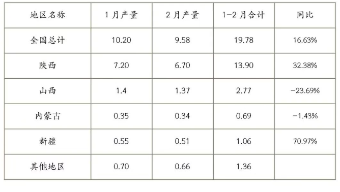 據中國有色金屬工業(yè)協(xié)會鎂業(yè)分會不完全統(tǒng)計,2026年1—2月中國共產原鎂約為19.78萬噸,同比增長約16.63%。其中,陜西地區(qū)累計生產約為13.90萬噸,同比增長約32.38%;山西地區(qū)累計生產約為2.77萬噸,同比下降約23.69%;內蒙古地區(qū)累計生產約為0.69萬噸,同比下降約1.43%;新疆地區(qū)累計生產約1.06萬噸,同比增長約70.97%;其他地區(qū)累計生產約為1.36萬噸。