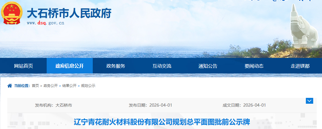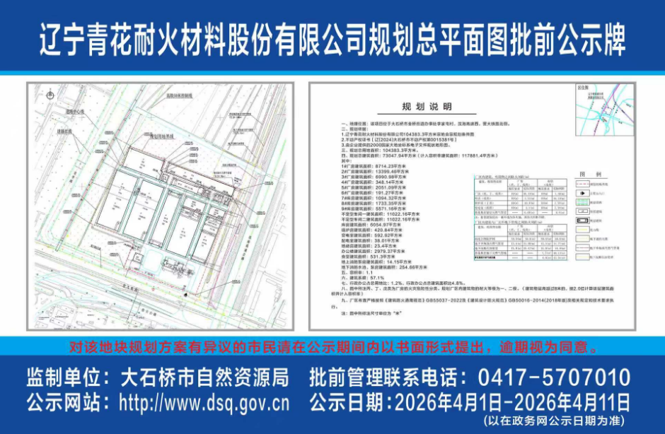 遼寧青花耐火材料股份有限公司規(guī)劃總平面圖批前公示牌