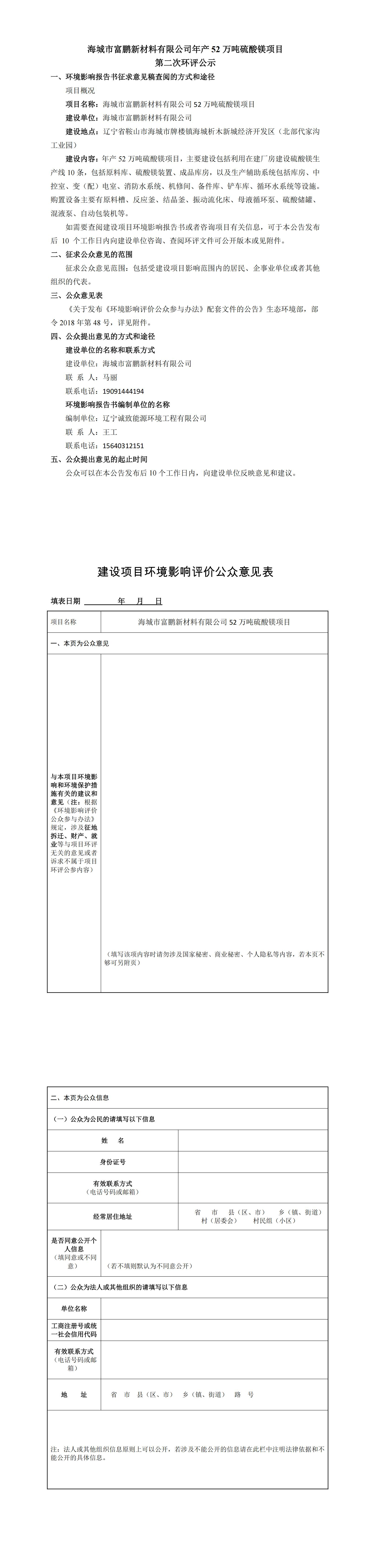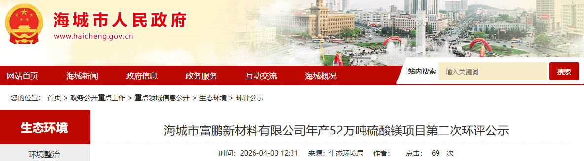附:海城市富鵬新材料有限公司年產(chǎn)52萬(wàn)噸硫酸鎂項(xiàng)目環(huán)境影響報(bào)告書(全文)