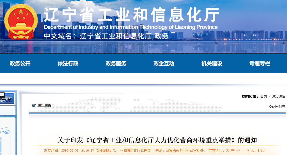 現(xiàn)將《遼寧省工業(yè)和信息化廳大力優(yōu)化營商環(huán)境重點舉措》印發(fā)給你們,請結合工作實際,認真做好落實。