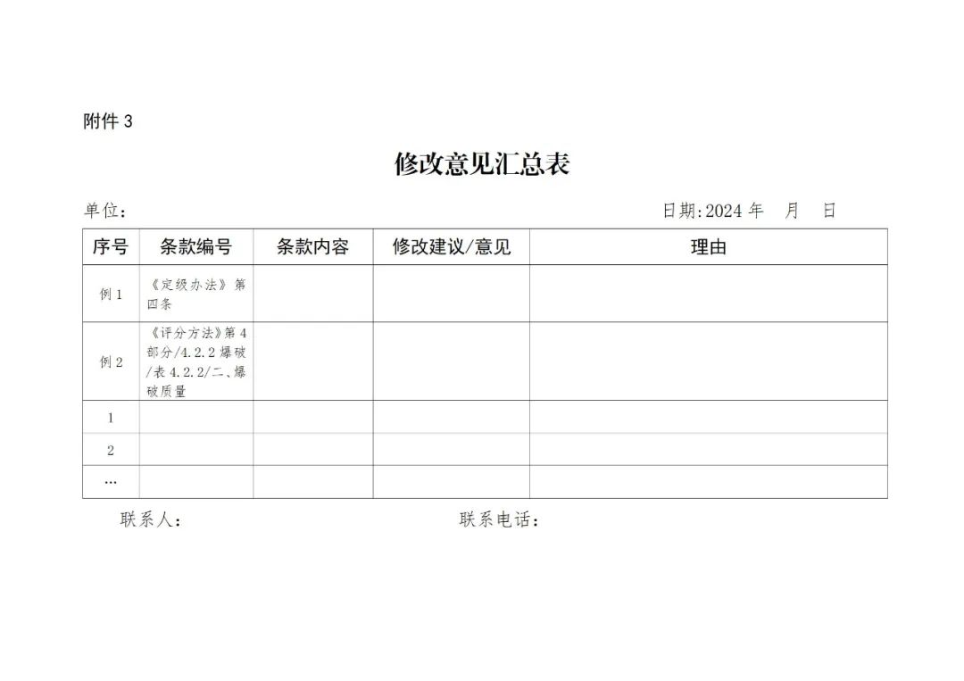 為進(jìn)一步加強(qiáng)和規(guī)范煤礦安全生產(chǎn)標(biāo)準(zhǔn)化建設(shè)工作,國(guó)家礦山安全監(jiān)察局組織修訂形成了《煤礦安全生產(chǎn)標(biāo)準(zhǔn)化管理體系考核定級(jí)辦法(征求意見(jiàn)稿)》(以下簡(jiǎn)稱(chēng)《定級(jí)辦法》,附件1)和《煤礦安全生產(chǎn)標(biāo)準(zhǔn)化管理體系基本要求及評(píng)分方法(征求意見(jiàn)稿)》(以下簡(jiǎn)稱(chēng)《評(píng)分方法》,附件2),現(xiàn)向社會(huì)公開(kāi)征求意見(jiàn),反饋截止時(shí)間為2024年8月24日。反饋意見(jiàn)請(qǐng)?zhí)顚?xiě)《修改意見(jiàn)匯總表》(附件3),并發(fā)送至電子郵箱jcc4750@sina.com。