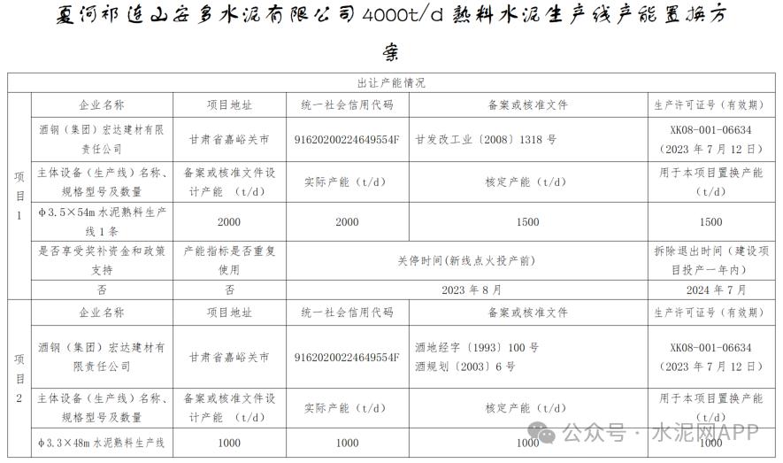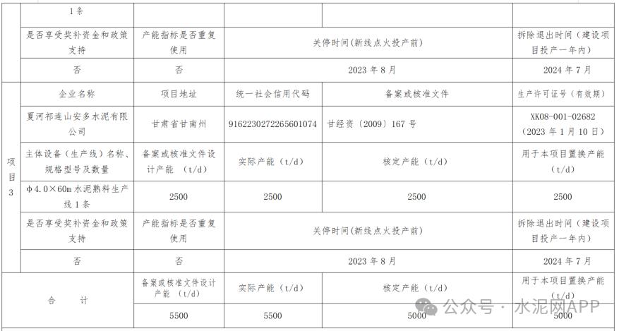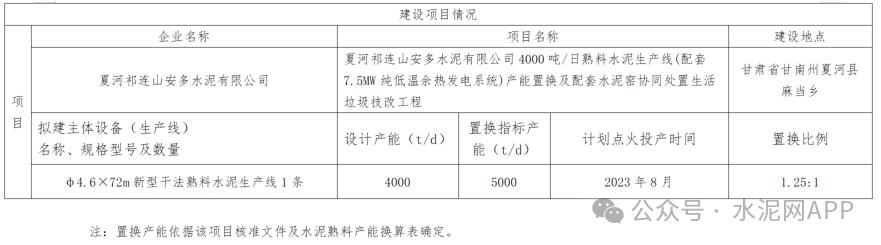 據甘肅工信廳此前發(fā)布,夏河祁連山安多水泥原計劃在夏河縣麻當鄉(xiāng)置換新建一條4000t/d熟料項目,置換比例1.25:1,產能置換方案如下: