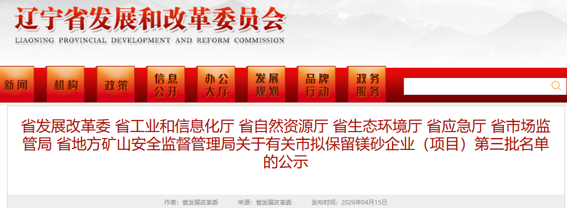 根據(jù)《遼寧省人民政府辦公廳關(guān)于推進菱鎂行業(yè)高質(zhì)量發(fā)展的實施意見》(遼政辦發(fā)〔2023〕15號)、《遼寧省人民政府辦公廳關(guān)于印發(fā)遼寧省菱鎂行業(yè)專項整治方案的通知》(遼政辦發(fā)〔2023〕34號)要求,有關(guān)市政府向省菱鎂行業(yè)高質(zhì)量發(fā)展領(lǐng)導小組辦公室報送了本市擬保留鎂砂企業(yè)(項目)名單,同時對部分已公示項目進行了調(diào)整。現(xiàn)將相關(guān)企業(yè)(項目)名單有關(guān)情況面向社會公示,公示期5個工作日。
