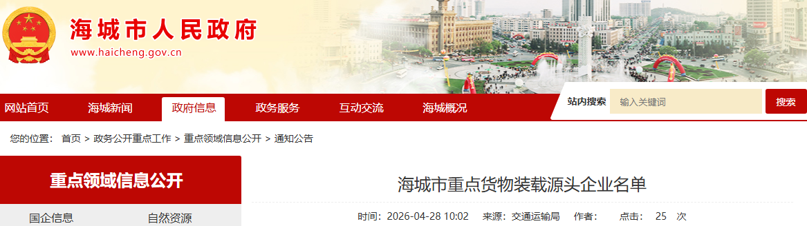 海城市公布重點貨物裝載源頭企業(yè)名單,主要貨物為菱鎂礦石