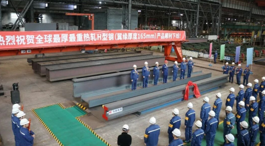 4月21日,馬鋼有限H型鋼產(chǎn)線攻克行業(yè)技術(shù)難題,全球最厚最重熱軋H型鋼產(chǎn)品順利下線。此次下線的熱軋型鋼產(chǎn)品翼緣厚度達165毫米,米重1509千克,是當前全球最厚、最重的熱軋H型鋼,馬鋼有限也成為全球唯一具備該規(guī)格產(chǎn)品供貨能力的企業(yè),彰顯出企業(yè)頂尖的裝備技術(shù)與先進工藝水平,助力中國鋼鐵領(lǐng)跑全球高端型材領(lǐng)域。