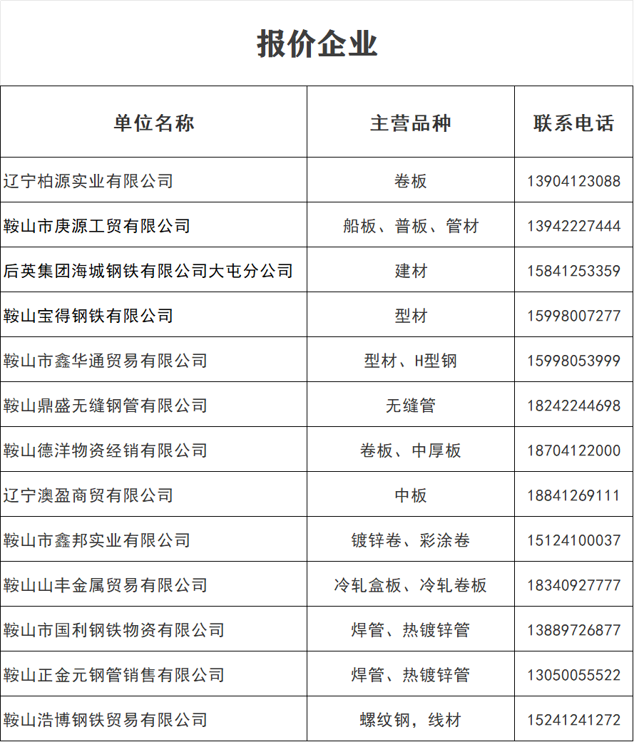 4月30日 鞍山地區(qū)鋼材價(jià)格表