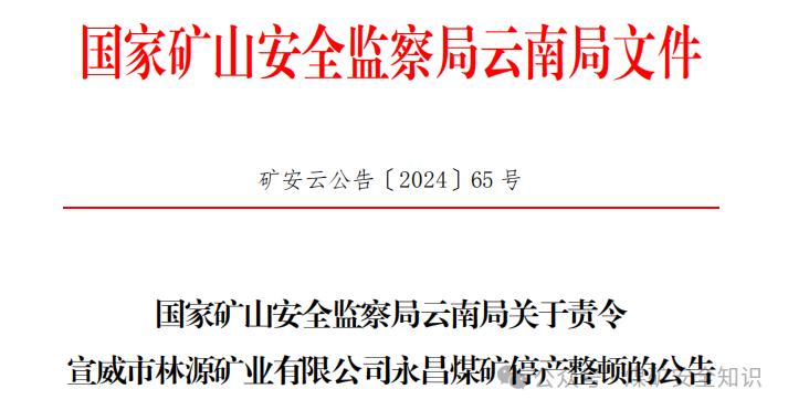 2024年8月14日至15日,國(guó)家礦山安全監(jiān)察局云南局對(duì)宣威市林源礦業(yè)有限公司永昌煤礦進(jìn)行監(jiān)察執(zhí)法時(shí),發(fā)現(xiàn)該礦存在“圖紙作假、隱瞞采掘工作面”的重大事故隱患仍然進(jìn)行生產(chǎn)依據(jù)《煤礦安全生產(chǎn)條例》第六十四條的規(guī)定,國(guó)家礦山安全監(jiān)察局云南局責(zé)令該礦停產(chǎn)整頓 30天。