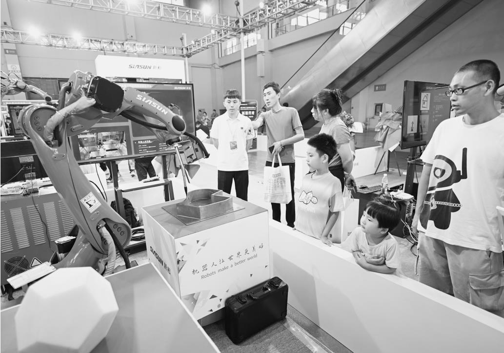 圖為制博會(huì)上,市民在新松公司展位前參觀。