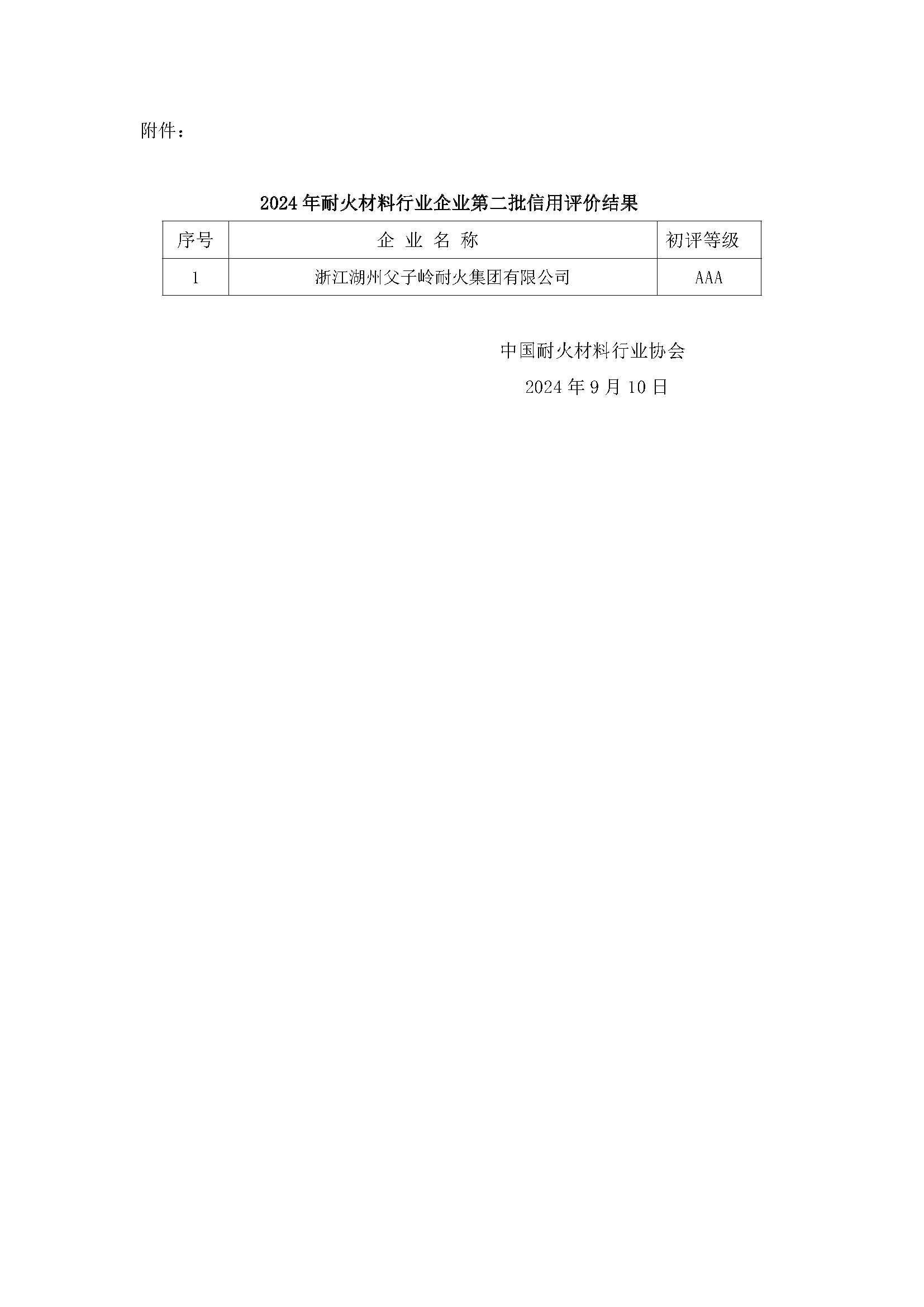 關(guān)于公示2024年耐火材料行業(yè)企業(yè)第二批信用評(píng)價(jià)結(jié)果的通知