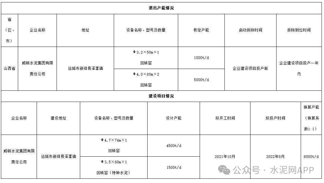 9月13日,山西省工信廳發(fā)布“關(guān)于威頓水泥集團(tuán)有限責(zé)任公司產(chǎn)能退出設(shè)備拆除情況的公告”稱,根據(jù)工業(yè)和信息化部《水泥玻璃行業(yè)產(chǎn)能置換實(shí)施辦法》有關(guān)規(guī)定,經(jīng)新絳縣工信局、運(yùn)城市工信局驗(yàn)收確認(rèn)和專家核查等工作程序,威頓水泥集團(tuán)有限責(zé)任公司數(shù)字化智能化綠色工廠技術(shù)改造項(xiàng)目退出生產(chǎn)線主體設(shè)備Φ3.2米×50米回轉(zhuǎn)窯1臺(tái)、Φ4.0米×60米回轉(zhuǎn)窯2臺(tái)已拆除,予以公告。