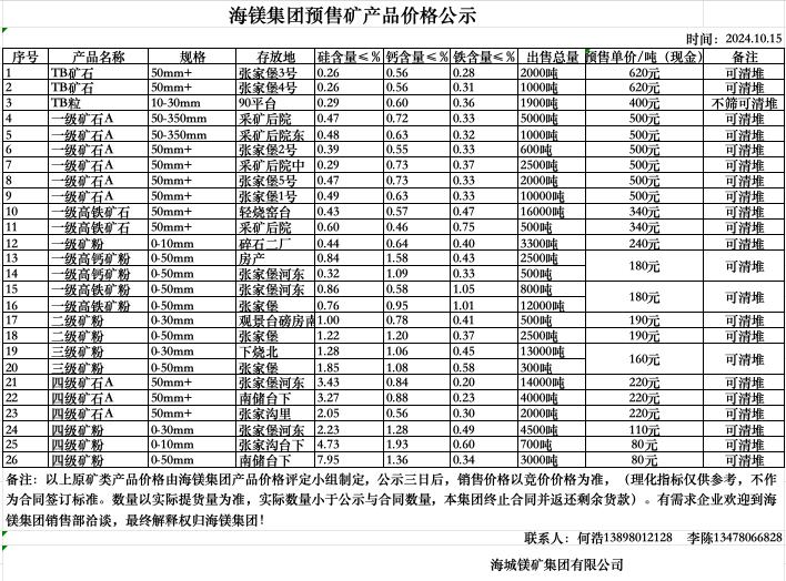 海鎂集團預(yù)售礦產(chǎn)品價格公示