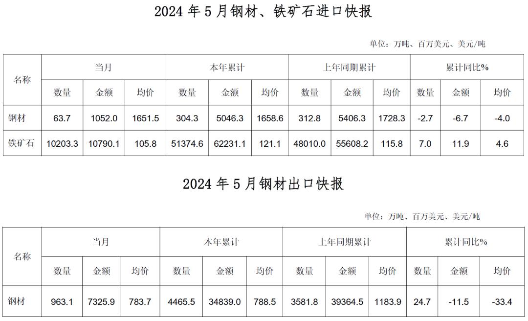 5月主要冶金產(chǎn)品進(jìn)出口快報(bào)