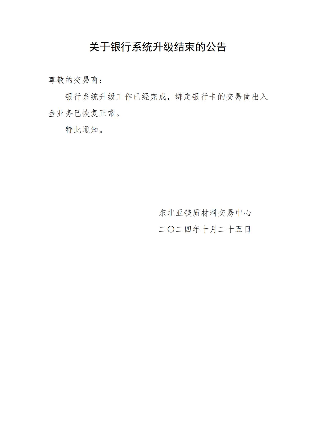 關(guān)于銀行系統(tǒng)升級結(jié)束的公告