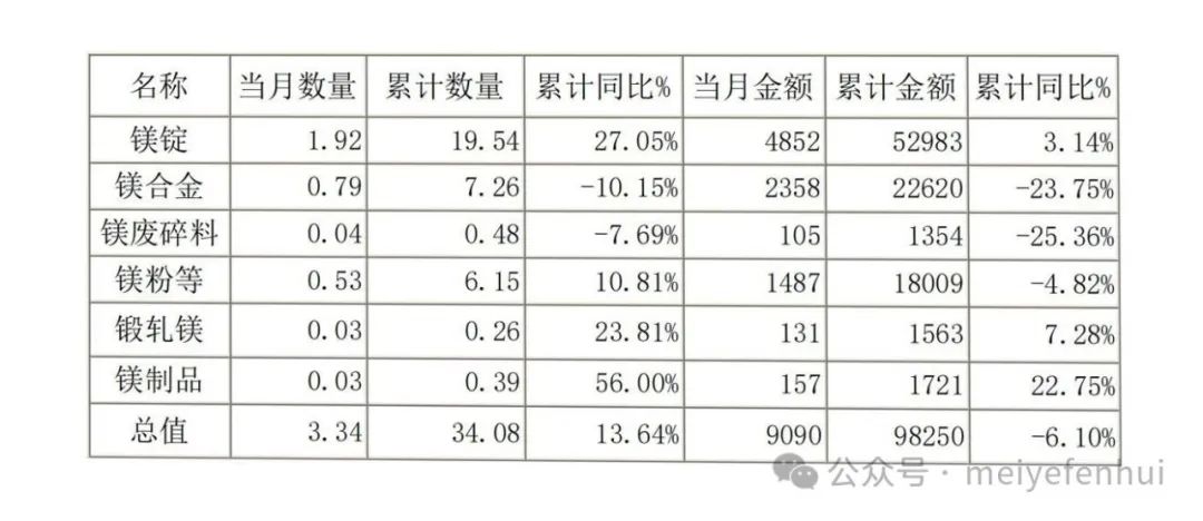 2024年1-9月中國(guó)各類鎂產(chǎn)品出口統(tǒng)計(jì)情況 (單位:萬噸、萬美元)