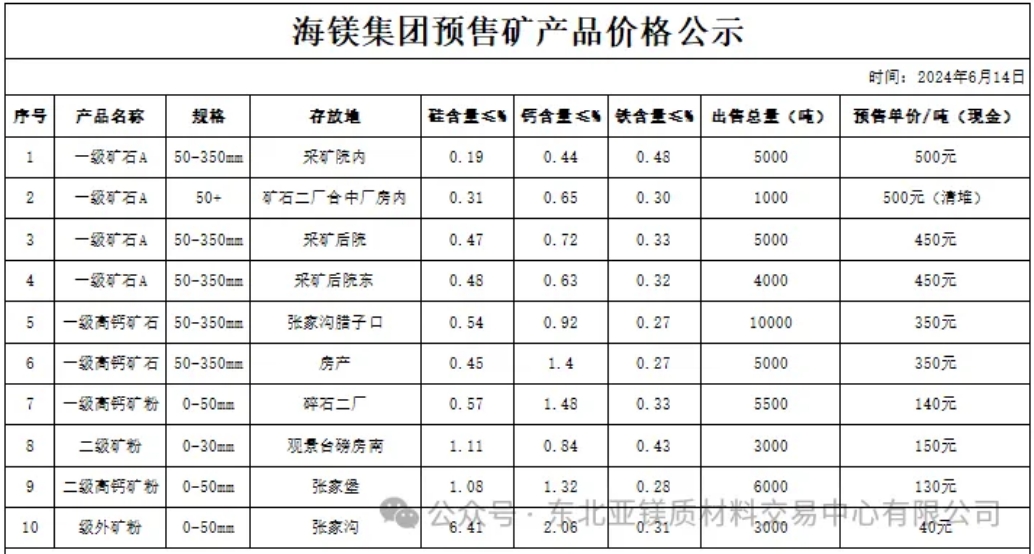 就在上周五下午,海鎂集團在官網(wǎng)公示了其一級礦石A、一級高鈣礦石等礦產(chǎn)品理化指標和預售價格,可以看到,個別礦產(chǎn)品預售價格較海鎂上月同期報價已經(jīng)有了一定的上浮。