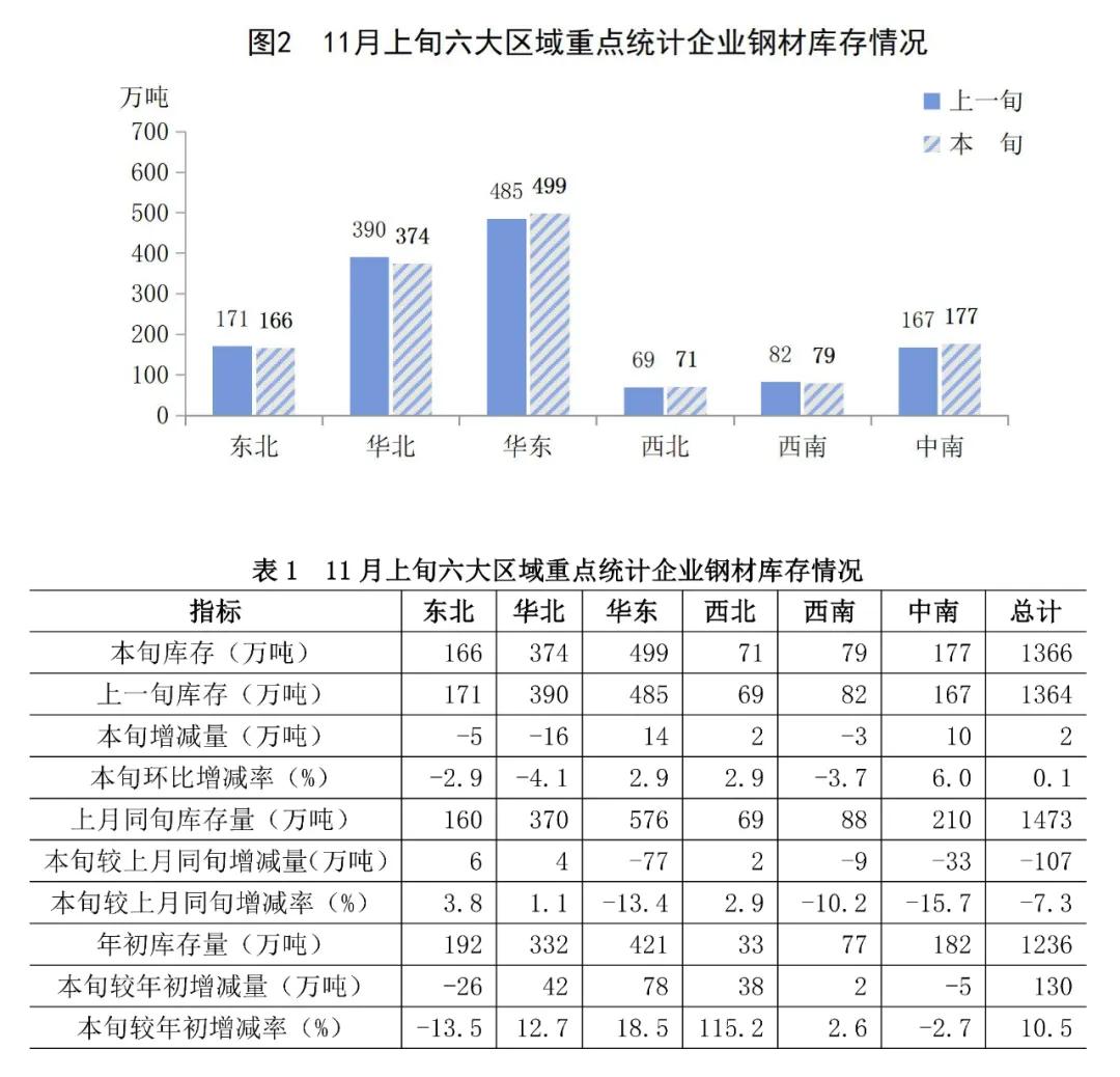 11月上旬重點(diǎn)統(tǒng)計(jì)企業(yè)鋼材庫(kù)存情況