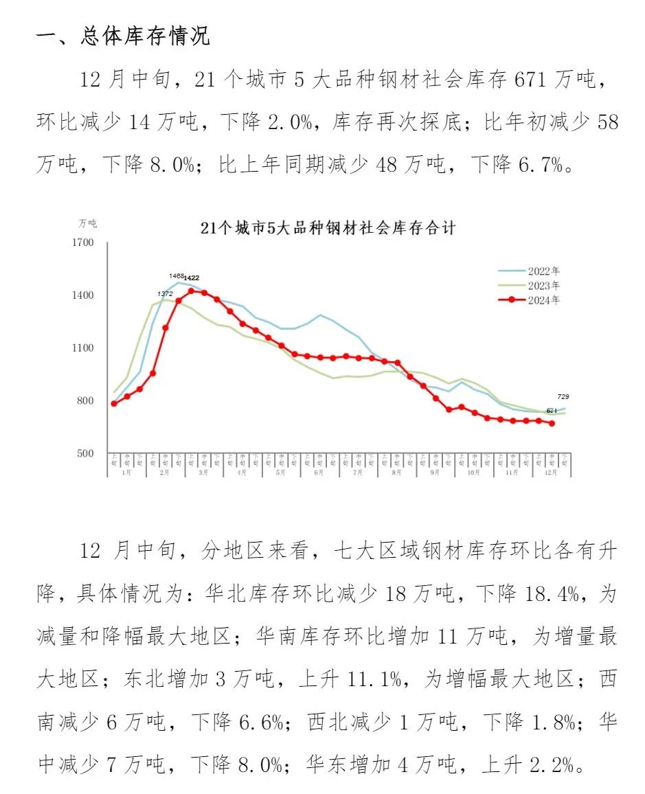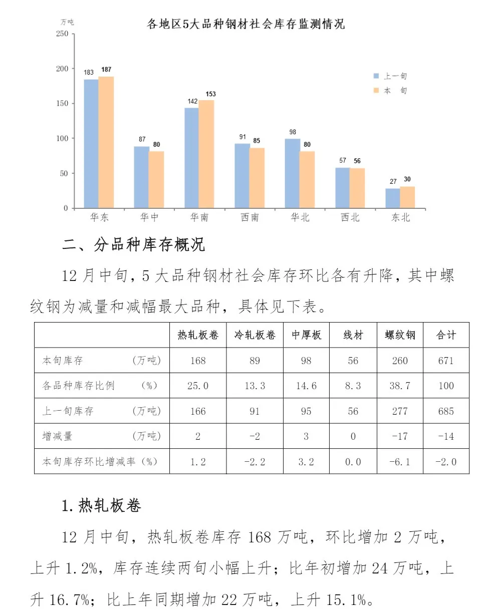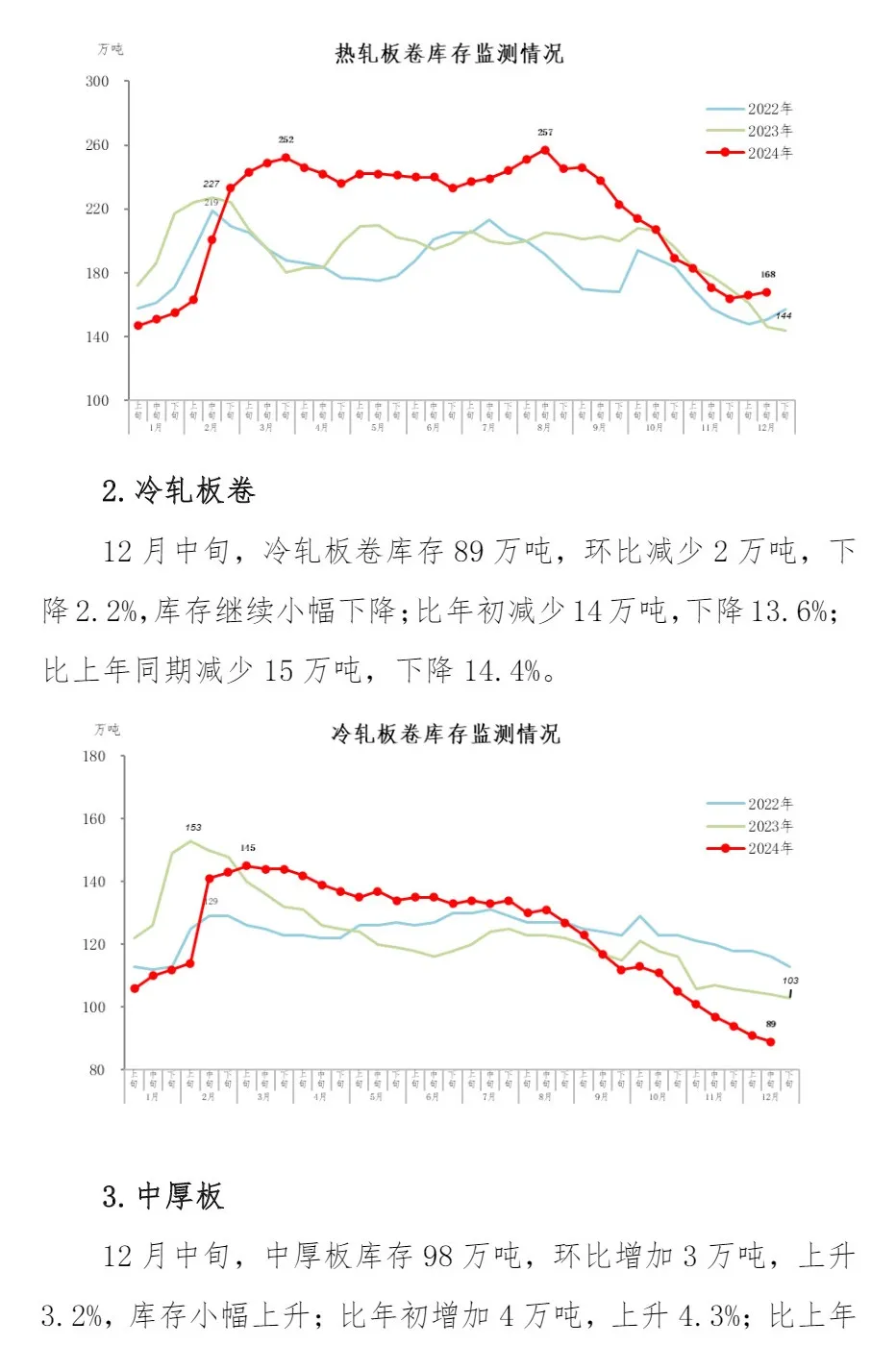 12月中旬鋼材社會庫存監(jiān)測旬報?