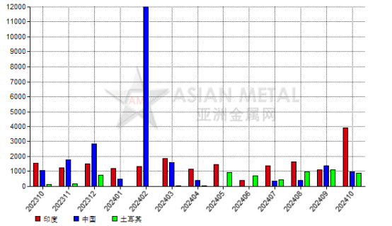 2024年10月,馬達(dá)加斯加石墨粉前三大出口目的國為印度、中國和土耳其。