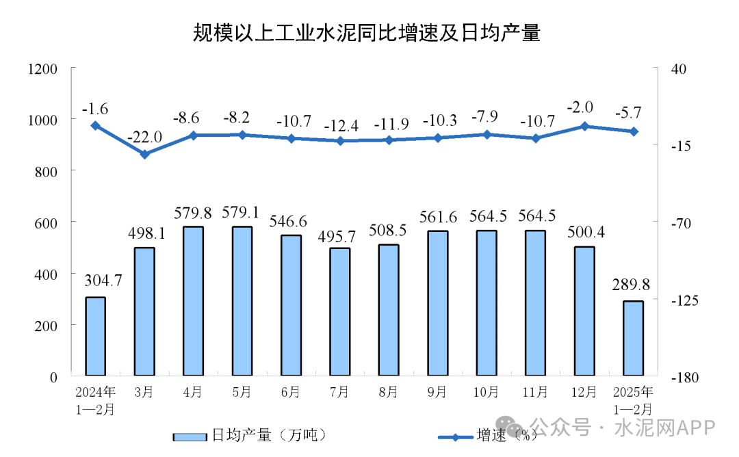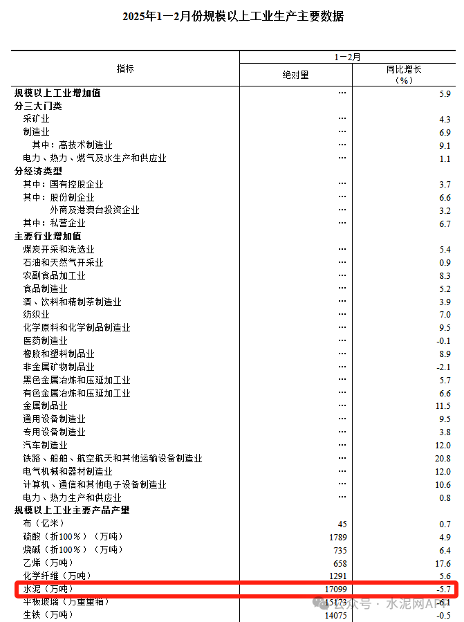 3月17日,據(jù)國(guó)家統(tǒng)計(jì)局發(fā)布,1—2月份,規(guī)模以上工業(yè)增加值同比實(shí)際增長(zhǎng)5.9%(增加值增速均為扣除價(jià)格因素的實(shí)際增長(zhǎng)率)。從環(huán)比看,2月份,規(guī)模以上工業(yè)增加值比上月增長(zhǎng)0.51%。其中1-2月全國(guó)水泥產(chǎn)量17099萬(wàn)噸,同比下降5.7%。