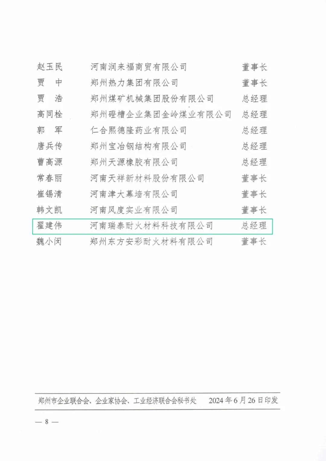 6月26日上午,2024年全國(guó)企業(yè)家活動(dòng)日鄭州分會(huì)場(chǎng)活動(dòng)在黃河迎賓館隆重舉行。河南瑞泰黨支部副書(shū)記、總經(jīng)理翟建偉榮獲“鄭州杰出企業(yè)家”稱(chēng)號(hào)。