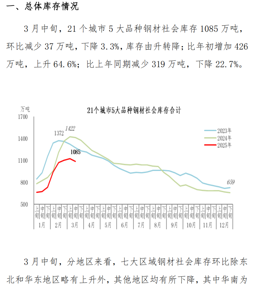 3月中旬鋼材社會(huì)庫(kù)存監(jiān)測(cè)旬報(bào)
