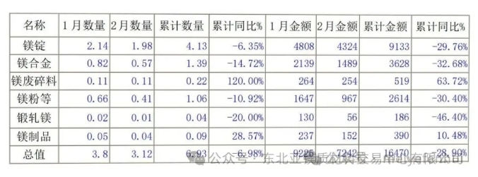 2025年1-2月中國各類鎂產(chǎn)品出口統(tǒng)計情況  (單位:萬噸、萬美元)