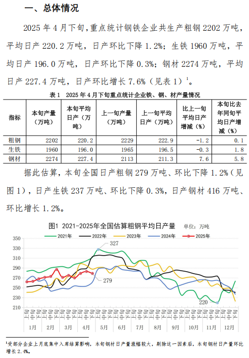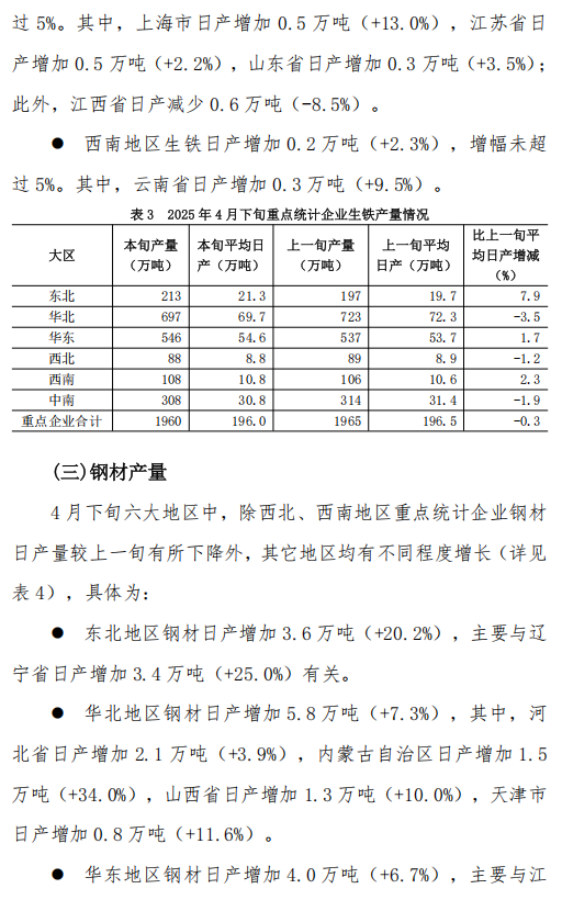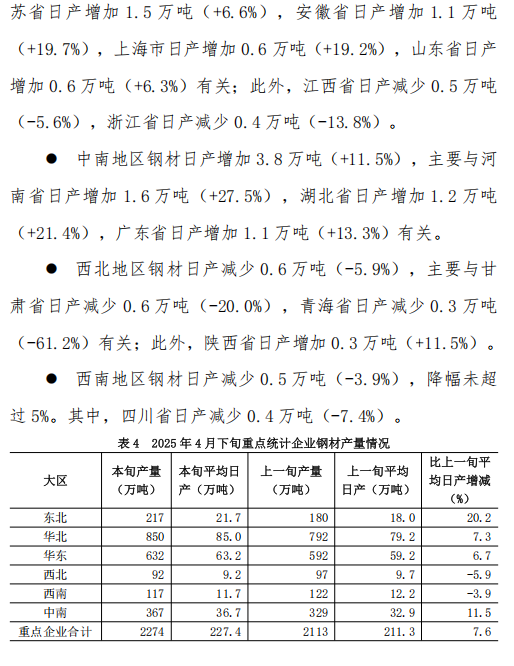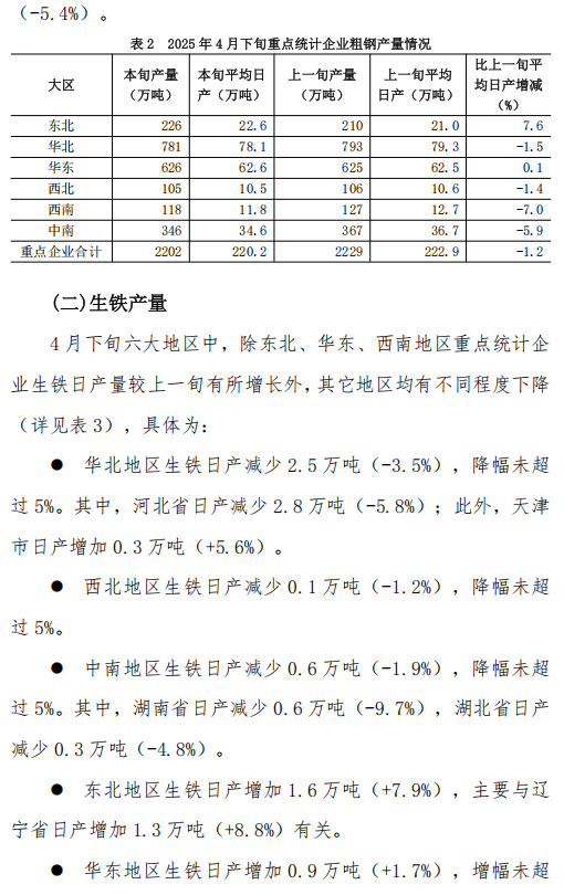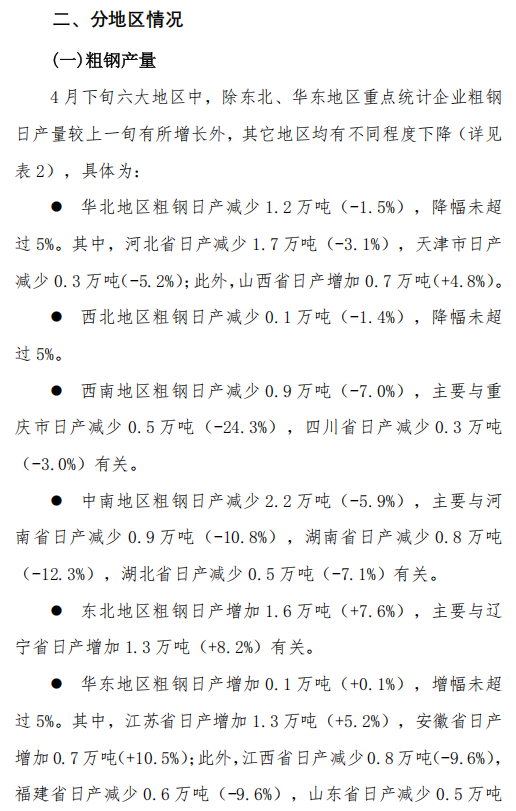 4月下旬重點(diǎn)企業(yè)鋼鐵產(chǎn)量旬報(bào)
