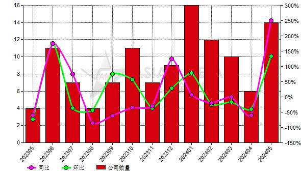5月份上述14家增產(chǎn)生產(chǎn)商共計(jì)生產(chǎn)鎂錠26,300.00公噸,比上月增加5,900.00公噸,平均每家增加421.43公噸。