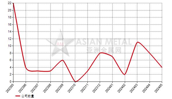 中國(guó)鎂錠生產(chǎn)商過(guò)去13個(gè)月增產(chǎn)公司數(shù)量