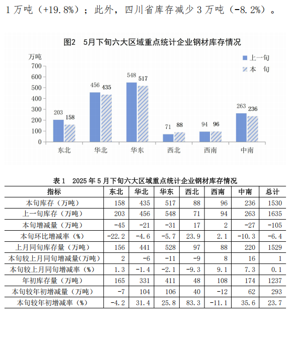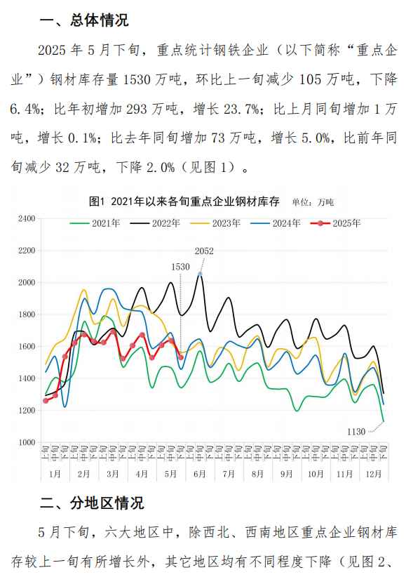5月下旬重點(diǎn)統(tǒng)計(jì)企業(yè)鋼材庫存旬報