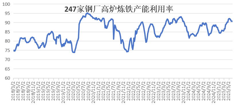 目前樣本鋼企高爐煉鐵產能利用率90.58%,環(huán)比下降0.07%,日均鐵水產量241.61萬噸,環(huán)比減少0.19萬噸,鐵水產量持續(xù)下降,但依舊維持在240+的水平,且鋼企有利潤的情況下,未來產量即使下降幅度也會較小。