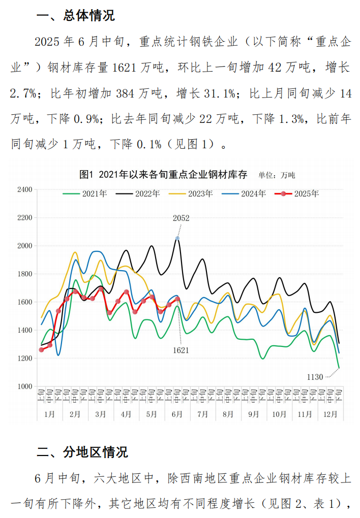 6月中旬重點(diǎn)統(tǒng)計(jì)企業(yè)鋼材庫存旬報(bào)