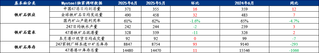 數(shù)據(jù)來源:Mysteel鐵礦石核心數(shù)據(jù)