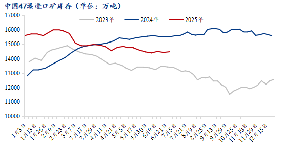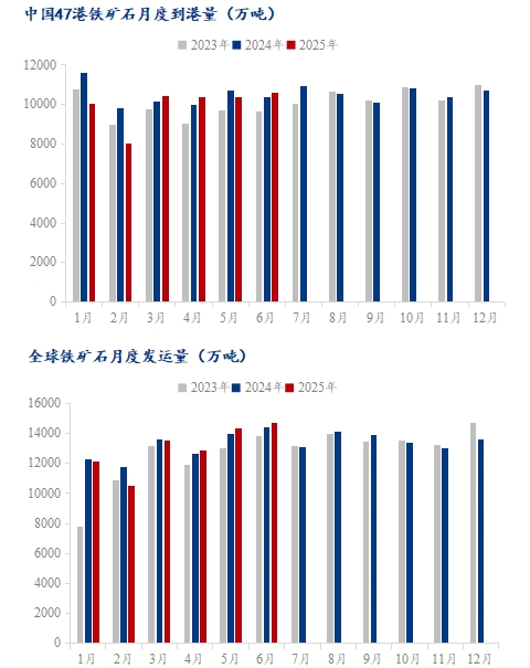 綜合來看,2025年7月中國市場鐵礦石過渡至供應寬松,港口庫存或?qū)⒗^續(xù)累庫,鐵礦石價格或?qū)⑵跽鹗帯?